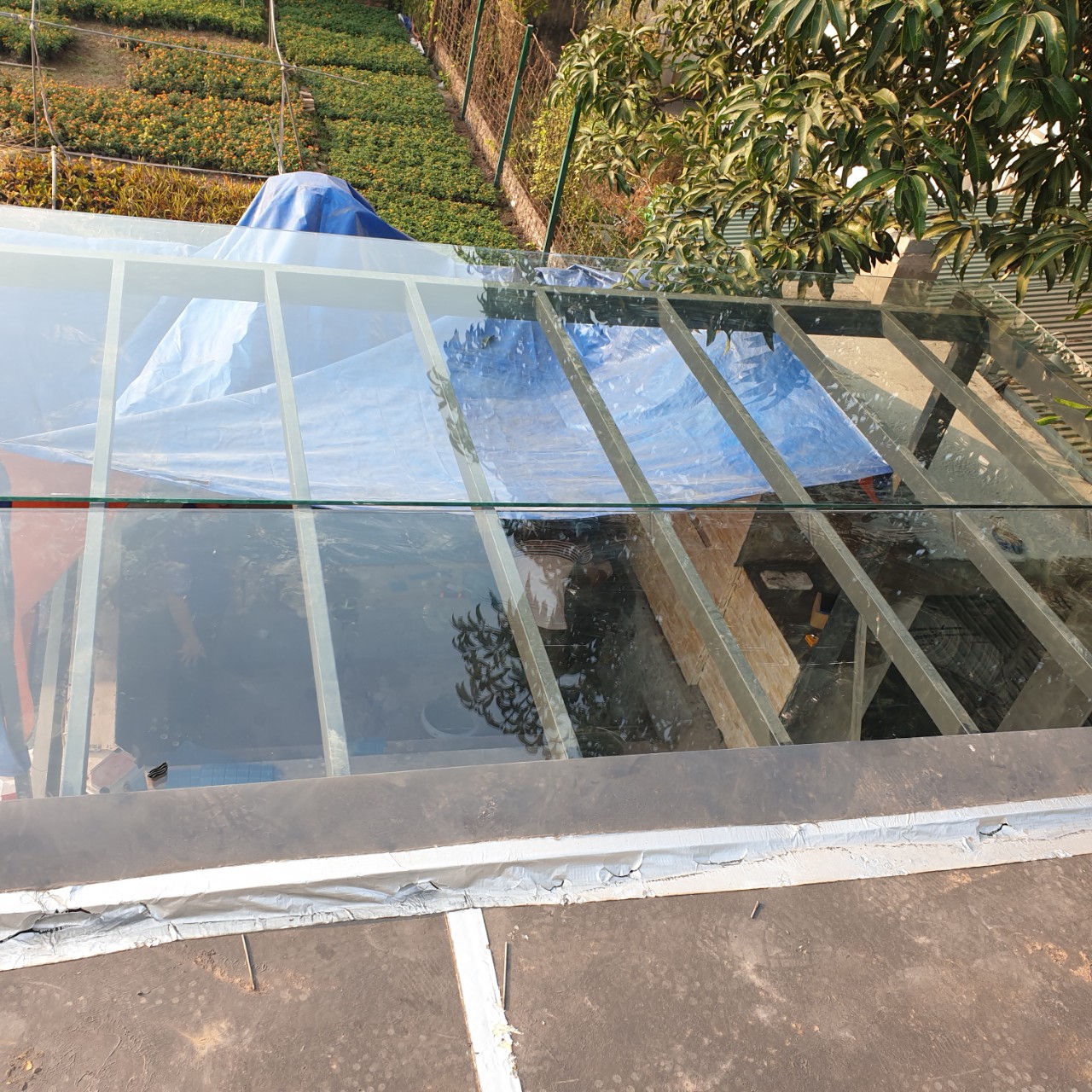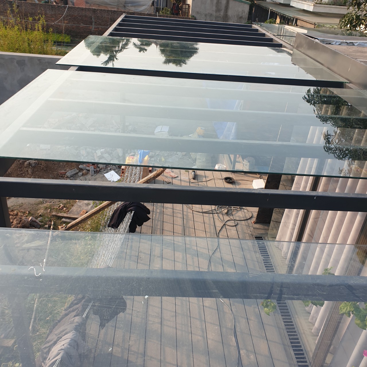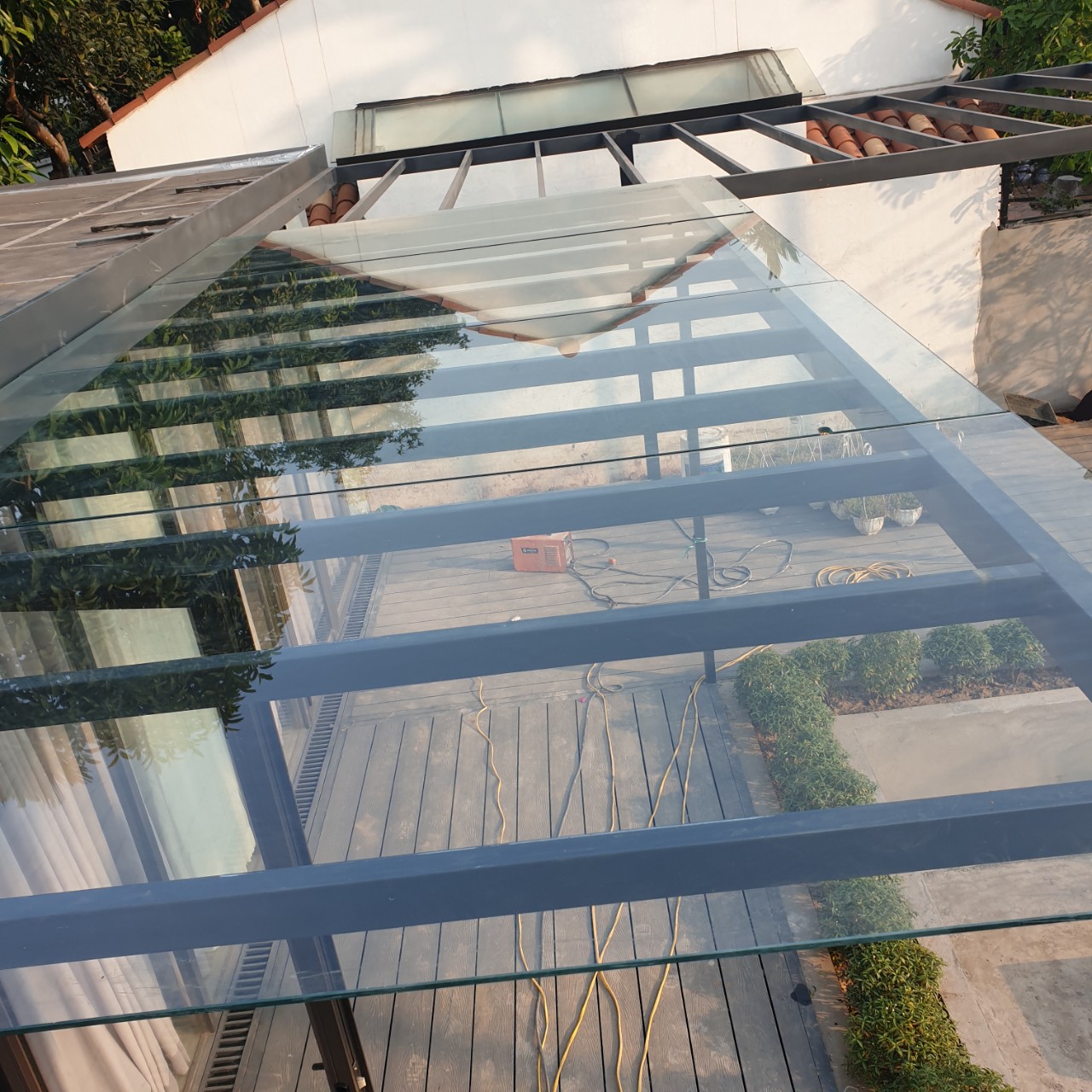 Thi công kính mái tại khu đô thị Ecopark